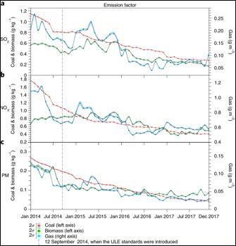10月7日,來自中、英兩國的研究團隊在英國《自然·能源》(Nature Energy)雜志上發(fā)表名為《超低排放標(biāo)準(zhǔn)出臺后,中國發(fā)電廠實現(xiàn)大幅減排》的學(xué)術(shù)論文,對中國2014年9月至2017年底的空氣數(shù)據(jù)進行案例分析后,得出結(jié)論:自2014年以來,中國針對燃煤火電機組采取的超低排放(Ultra-Low Emissions ,簡稱ULE)改造措施已取得顯著成效。