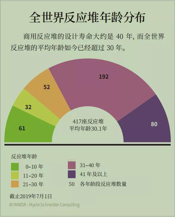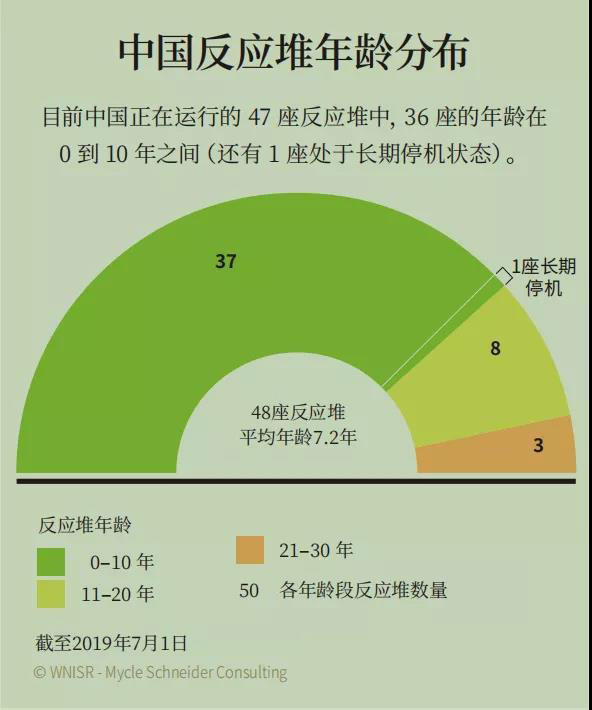 和歐美國家相比,中國的核電產(chǎn)業(yè)可以說非常年輕。截至2019年7月1日,中國正在運(yùn)行的反應(yīng)堆有47座,還有一座處于長(zhǎng)期停機(jī)狀態(tài),平均年齡為7.2年。但是施奈德說:“中國現(xiàn)在或許不用考慮這個(gè)問題,但是它總會(huì)發(fā)生,而且會(huì)集中爆發(fā)?!?