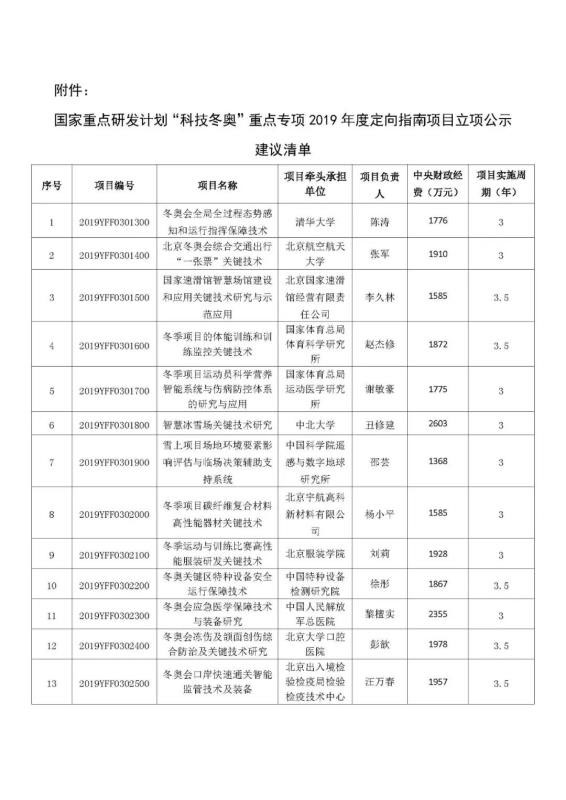 中國(guó)儲(chǔ)能網(wǎng)訊:根據(jù)《國(guó)務(wù)院關(guān)于改進(jìn)加強(qiáng)中央財(cái)政科研項(xiàng)目和資金管理的若干意見》(國(guó)發(fā)[2014]11號(hào))、《國(guó)務(wù)院關(guān)于深化中央財(cái)政科技計(jì)劃(專項(xiàng)、基金等)管理改革方案的通知》(國(guó)發(fā)[2014]64號(hào))、《科技部、財(cái)政部關(guān)于印發(fā)<國(guó)家重點(diǎn)研發(fā)計(jì)劃管理暫行辦法>的通知》(國(guó)科發(fā)資[2017]152號(hào))等文件要求,現(xiàn)對(duì)“科技冬奧”重點(diǎn)專項(xiàng)2019年度定向指南擬立項(xiàng)的項(xiàng)目信息進(jìn)行公示(詳見附件)。