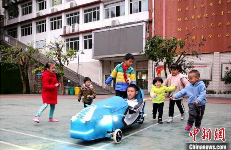中新網瀘州12月2日電 (鄒立楊 王超明)“我從小特別喜歡汽車,讀初中時就夢想造一輛新能源‘汽車’。”四川省瀘州市江南職業(yè)中學學生于勇俊的夢想終于成真。近日,他利用2000余元零花錢,自行研制出一輛新能源“汽車”:不需加氣、不需加油,只需充滿電,就能達到時速45公里、續(xù)航30公里。