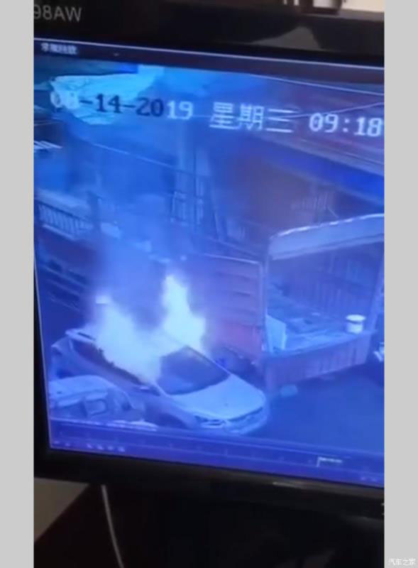 『江淮純電動(dòng)SUV自燃現(xiàn)場(chǎng)監(jiān)控視頻截圖,畫質(zhì)欠佳敬請(qǐng)諒解』