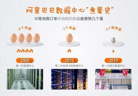 2005年,阿里平臺上每10筆電商交易,消耗的能源可以煮熟4顆雞蛋;2015年,每10筆電商交易的能耗就只夠煮熟1顆雞蛋;而現(xiàn)在呢,只能煮熟1顆鵪鶉蛋了。