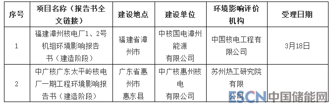據(jù)生態(tài)環(huán)境部官網(wǎng)3月18日消息,生態(tài)環(huán)境部發(fā)布《關(guān)于2019年3月18日建設(shè)項(xiàng)目環(huán)境影響評(píng)價(jià)文件受理情況的公示(核與輻射)》,根據(jù)公示信息,廣東太平嶺核電廠和福建漳州核電廠的核電機(jī)組預(yù)計(jì)在6月份開工建設(shè)。