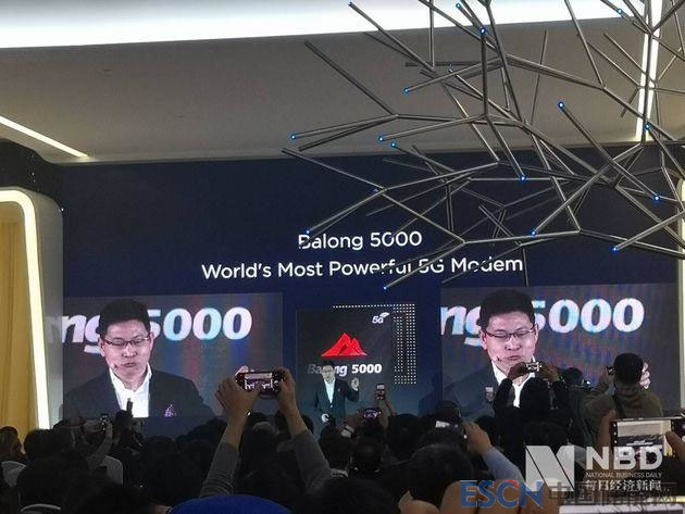 華為常務(wù)董事、消費(fèi)者業(yè)務(wù)CEO余承東發(fā)布巴龍5000 圖片來源:每經(jīng)記者 王晶 攝