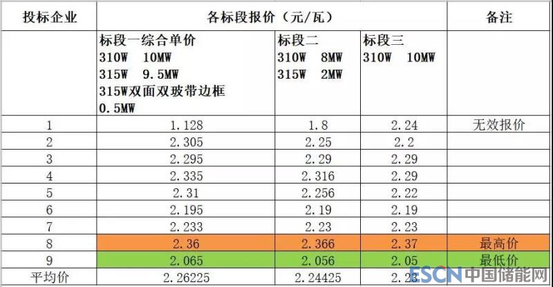 從開標(biāo)價格可以看出,除去無效報價,三個標(biāo)段的最低價格為2.05元/瓦,最高報價為2.37元/瓦,平均價格集中在2.2-2.3元/瓦。