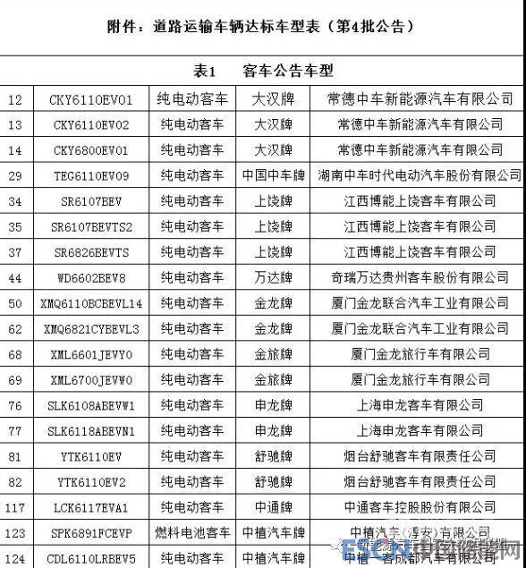 中國儲(chǔ)能網(wǎng)訊:2018年12月24日,交通部發(fā)布《道路運(yùn)輸車輛達(dá)標(biāo)車型表(第4批)》,其中,達(dá)標(biāo)車型中含25款新能源車型,包括18款純電動(dòng)客車,1款燃料電池客車,6款純電動(dòng)物流車。