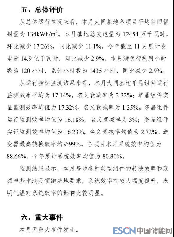 大同一期光伏領(lǐng)跑者基地11月報(bào)出爐
