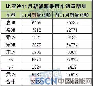 (2)比亞迪秦DM11月銷量3912輛,前11月共銷售42771輛;秦EV在11月貢獻了1331輛的銷量成績,同比增長1258%,前11月共銷售9182輛。