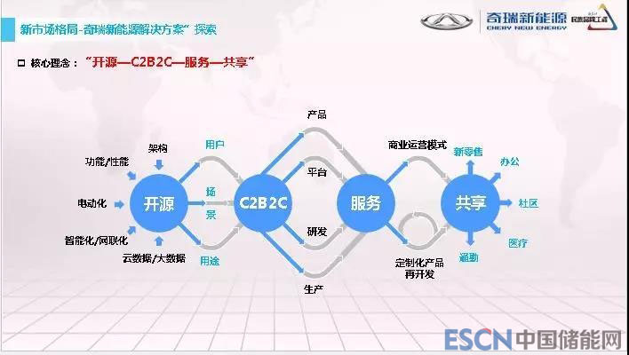奇瑞新能源針對(duì)這種變化構(gòu)建了一個(gè)模型。在開源的基礎(chǔ)上加上C2B2C,為客戶提供服務(wù),而不是車,也就是采用很多資源共享的方式。