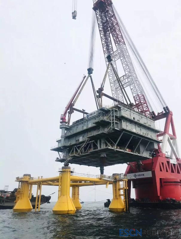 10月22日12時(shí)30分,經(jīng)過(guò)24個(gè)小時(shí)的連續(xù)奮戰(zhàn),三峽新能源大連莊河海上風(fēng)電項(xiàng)目220千伏海上升壓站吊裝成功。