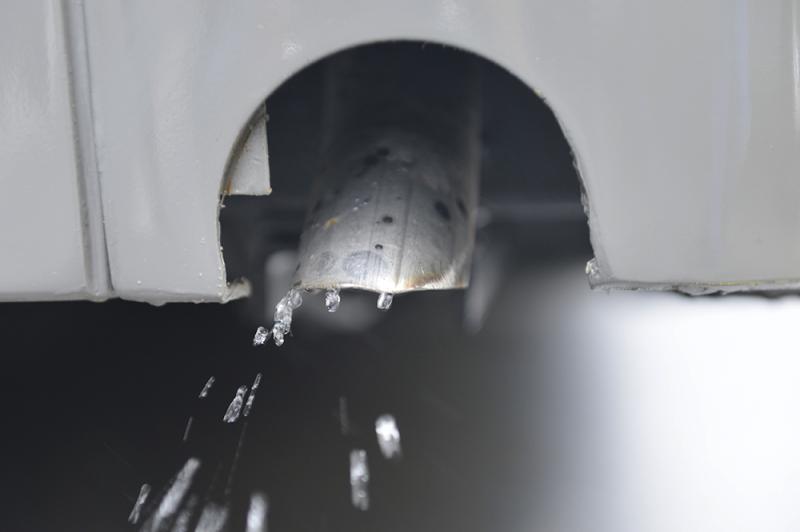 氫燃料電池大客車"排氣管"排出的無(wú)污染水。
