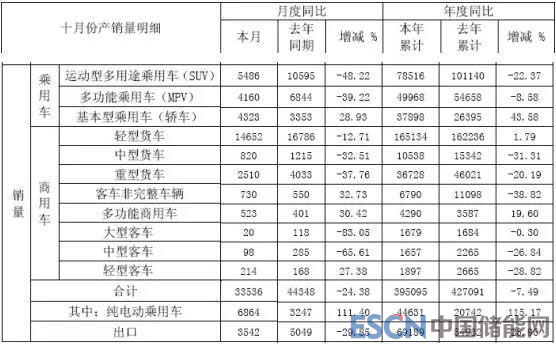 在三季報(bào)發(fā)布后的一周,11月6日晚江淮汽車又披露了10月產(chǎn)銷快報(bào),公司10月份汽車產(chǎn)量合計(jì)34287輛,同比下滑24.47%;銷量33536輛,同比下滑24.38%。1至10月,累計(jì)產(chǎn)量396873輛,同比下滑5.72%;累計(jì)銷量395095輛,同比下滑7.49%。