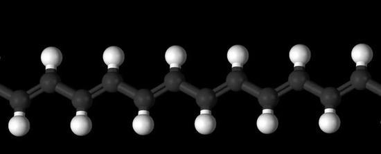 聚乙炔的化學(xué)結(jié)構(gòu)式(上)和球棍模型圖(下)。圖片來源:wikipedia