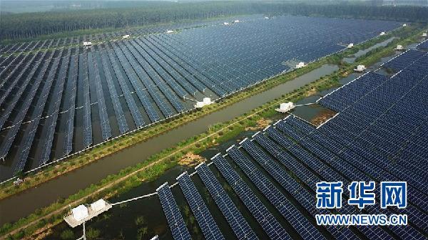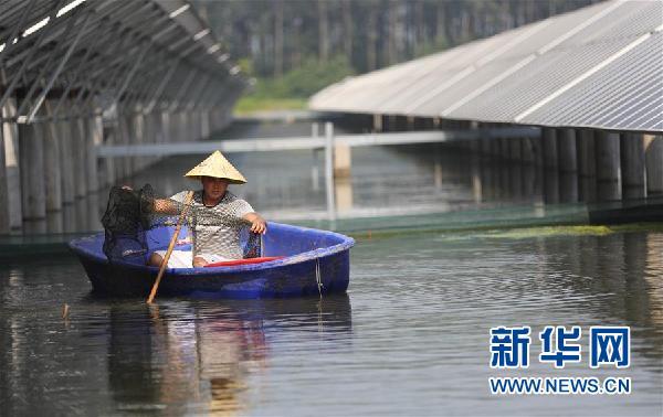 中國儲能網(wǎng)訊:江蘇省金湖縣位于長江下游,水域面積廣闊。近年來,金湖縣結(jié)合地理環(huán)境,在銀涂鎮(zhèn)寶應(yīng)湖湖邊建設(shè)100兆瓦“漁光互補(bǔ)”項目,將灘涂地改造為魚塘,上層用于光伏發(fā)電,下層為水產(chǎn)養(yǎng)殖,做到“一地兩用”,提高了資源利用率和單位面積土地的經(jīng)濟(jì)價值。 新華社記者 李雨澤 攝
