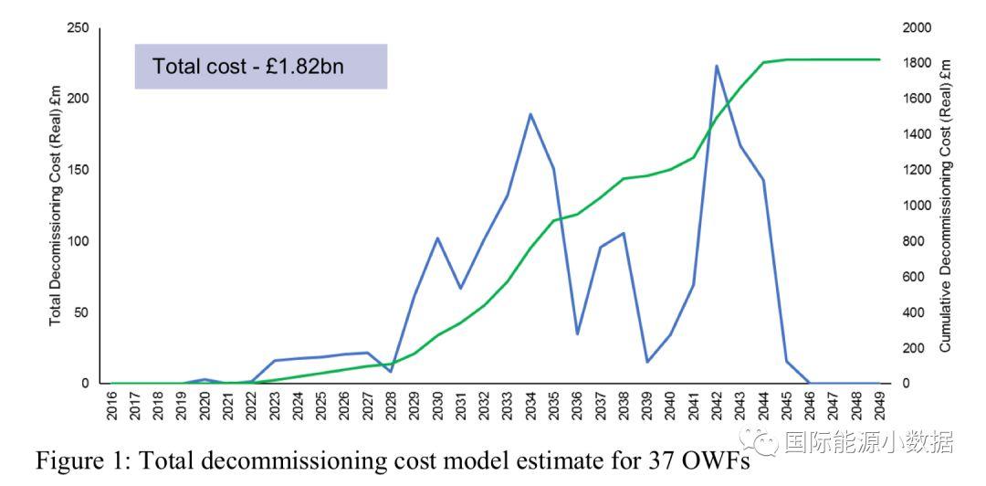中國儲能網(wǎng)訊:目前,各國在計算海上風(fēng)電的單位發(fā)電的平準成本時一般并沒有計算發(fā)電設(shè)備壽命到期之后的拆除成本。那么,海上風(fēng)電退役拆除成本到底多大呢?以英國為例,目前在運和在建的海上風(fēng)電場有37座。到2045年陸續(xù)退役,其拆除成本(不計輸電線)可達18.2億英鎊(約合24億美元,以2017年固定價格計算,不考慮通貨膨脹)。考慮不確定因素,最高可達需要36.4億英鎊(約合48億美元)。如果把拆除成本計入海上風(fēng)電的平準成本,大約會增加1%,尚在可控范圍內(nèi)。