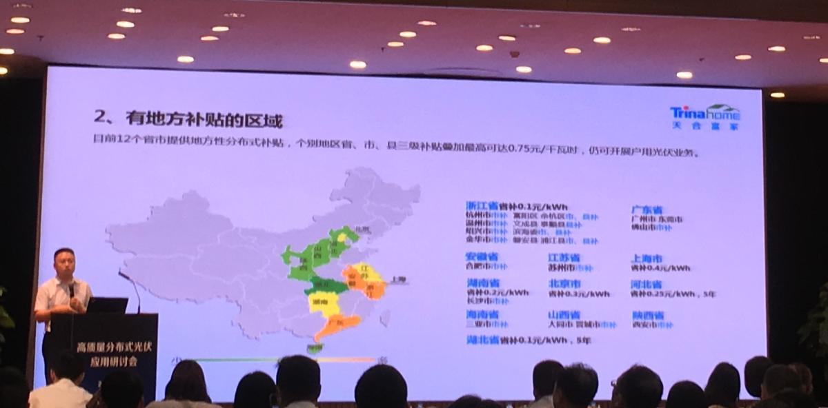 天合光能副總裁張兵在演講中提到,目前有12個省市提供地方性補貼,個別地區(qū)省、市、縣補貼疊加最高可達0.75元/千瓦時,仍可以開展戶用光伏項目。