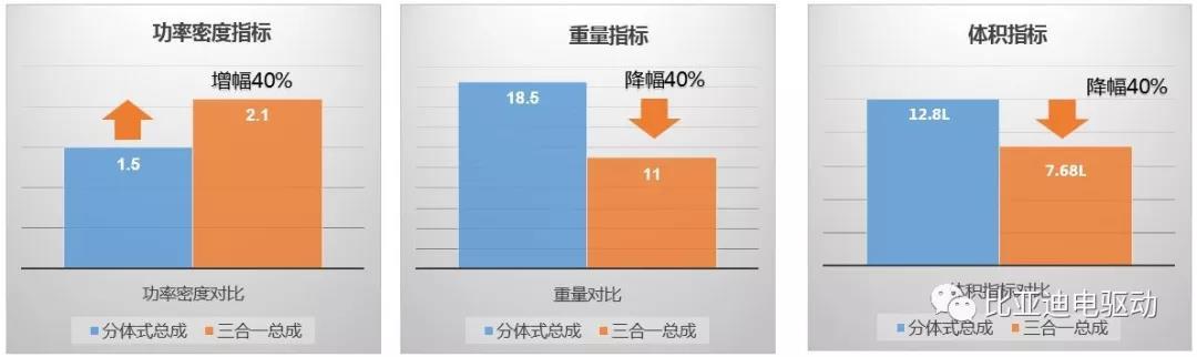 系統(tǒng)集成后,產(chǎn)品體積較分體式產(chǎn)品下降40%;重量較分體式產(chǎn)品下降40%;功率密度提升40%。整體減少了車載電源占用整車空間,更大限度利于整車布局。