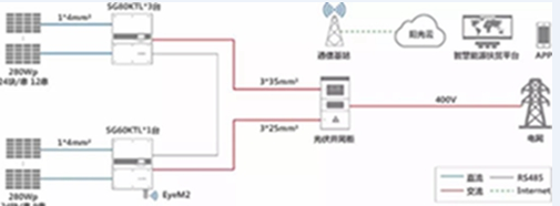逆變器標(biāo)配RS485通訊接口,通過通訊線纜“手拉手”式連接,只需給其中一臺逆變器配置EyeM2無線通訊模塊,由其集中上傳所有數(shù)據(jù),不僅讓組網(wǎng)更簡單,還能夠節(jié)省通訊模塊及流量費(fèi)用;同時(shí)通過陽光云APP掃描通訊模塊二維碼接入智慧能源管理平臺,一鍵掃碼建站,大大提升建站效率。
