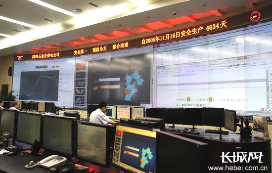 國網(wǎng)石家莊電力調(diào)度控制中心實(shí)時(shí)動(dòng)態(tài)監(jiān)測大屏。楊曉 攝