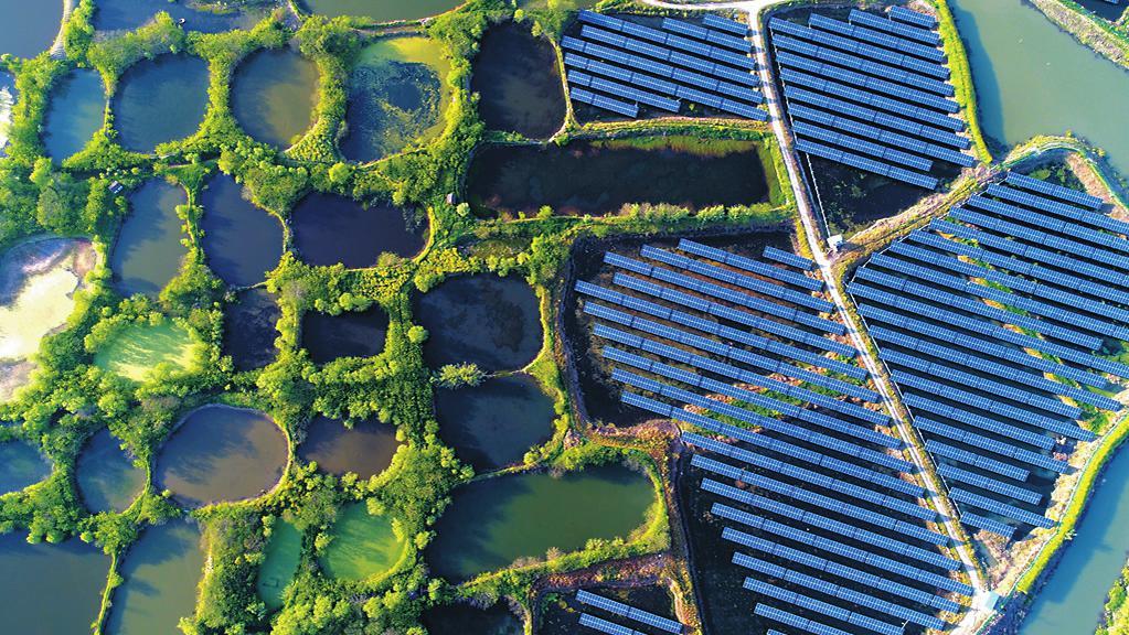 圖為近日在湖州市南潯區(qū)和孚鎮(zhèn),千年?;~塘系統(tǒng)與清潔能源利用構(gòu)成一幅和諧的生態(tài)美景。吳建勛 攝