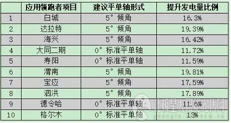 據(jù)悉,跟蹤支架主要包含平單軸、斜單軸、雙軸支架,具體選型與項(xiàng)目所在地維度和地形密切相關(guān),一般低緯度地區(qū)用平單軸,高緯度地區(qū)用斜單軸或雙軸。綜合考慮第三批領(lǐng)跑者項(xiàng)目地的維度及技術(shù)成熟度,平單軸方案勝出。根據(jù)中信博研究院提供的數(shù)據(jù)顯示,通過平單軸跟蹤系統(tǒng)的應(yīng)用,領(lǐng)跑者項(xiàng)目發(fā)電量提升可高達(dá)約20%。而發(fā)電量每提升1%,度電成本將降低0.007元。