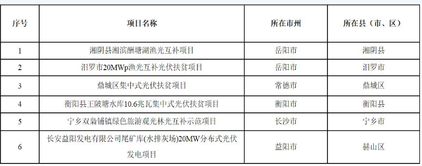 湖南省2017年集中式光伏扶貧電站建設(shè)規(guī)模增補項目公示