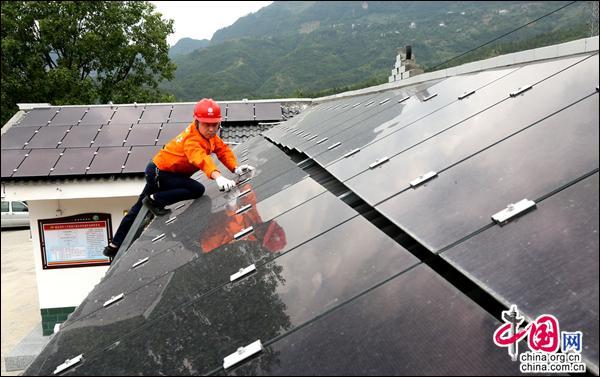 中國儲能網(wǎng)訊:5月31日下午,廣元市朝天區(qū)羊木鎮(zhèn)新山村村委會,專程趕來的國網(wǎng)廣元供電公司共產(chǎn)黨員服務(wù)隊原隊長田曉軍搬來梯子,爬上屋頂,逐一檢查光伏面板情況……“前兩天這里刮大風(fēng),我來看看螺栓有沒有松動,面板有沒有損壞?!?