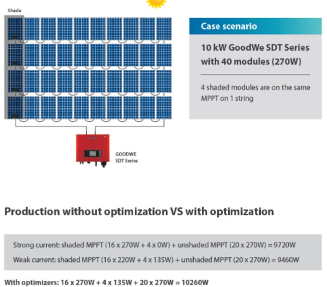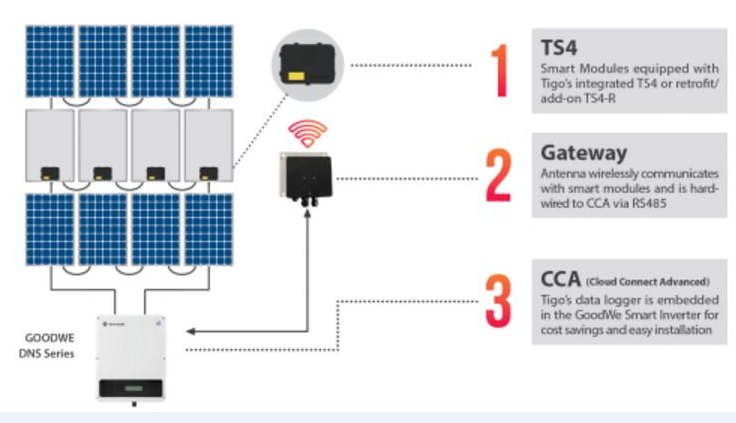 TigoTS4平臺(tái)還為固德威DNS和SDT逆變器提供了關(guān)機(jī)代碼,使逆變器遵從模塊級(jí)診斷,能最大化收集能源,兩者無縫協(xié)作。與市場(chǎng)上其他傳統(tǒng)優(yōu)化系統(tǒng)相比,即使在常規(guī)情況下,固德威改進(jìn)的模塊級(jí)方案,依然是一種創(chuàng)新高效的解決方案,能大大降低BOS成本,有效降低系統(tǒng)的總體成本且更易于安裝。