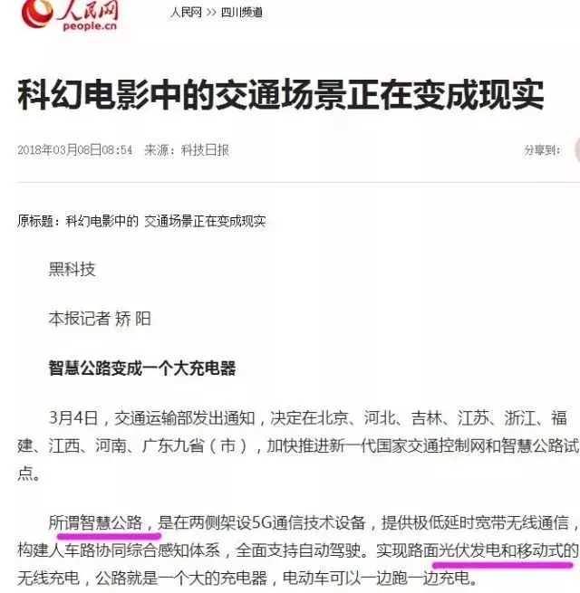 2、公路變成“充電寶”。路面下預(yù)留了電磁感應(yīng)線圈,隨著電動(dòng)汽車無線技術(shù)的配套使用,可實(shí)現(xiàn)電動(dòng)汽車在行駛過程中充電。