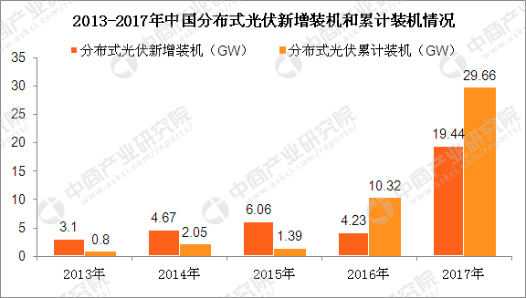 受上網(wǎng)電價(jià)調(diào)整等多重因素影響,2017年光伏發(fā)電市場規(guī)??焖贁U(kuò)大,新增裝機(jī)5306萬千瓦,其中,光伏電站3362萬千瓦,同比增加11%;分布式光伏1944萬千瓦,同比增長3.7倍。2017年我不哦分布式光伏累計(jì)裝機(jī)2966萬千瓦,其中,分布式光伏新增裝機(jī)1944萬千瓦。