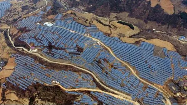 中國儲能網(wǎng)訊:2月5日,涼山州冕寧縣瀘沽鎮(zhèn)大田村光伏電站,飄散的雪花落在布滿山間的太陽能電池板電上,也落電池板間的油牡丹上。