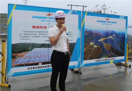 在儀式上,總裁助理黃振武代表猛獅科技董事長(zhǎng)兼總裁陳樂伍先生發(fā)表重要講話,他表示,湖北猛獅光電團(tuán)隊(duì)在總經(jīng)理姜興均的帶領(lǐng)下,不畏艱難、屢創(chuàng)奇跡,歷經(jīng)千辛萬(wàn)苦、克服重重困難保障電站如期并網(wǎng),充分展示了猛獅的社會(huì)責(zé)任擔(dān)當(dāng)。該電站是猛獅科技響應(yīng)國(guó)家光伏扶貧政策的有力舉措,更為當(dāng)?shù)胤鲐毊a(chǎn)業(yè)的發(fā)展做了積極的貢獻(xiàn),意義非凡、影響深遠(yuǎn)。