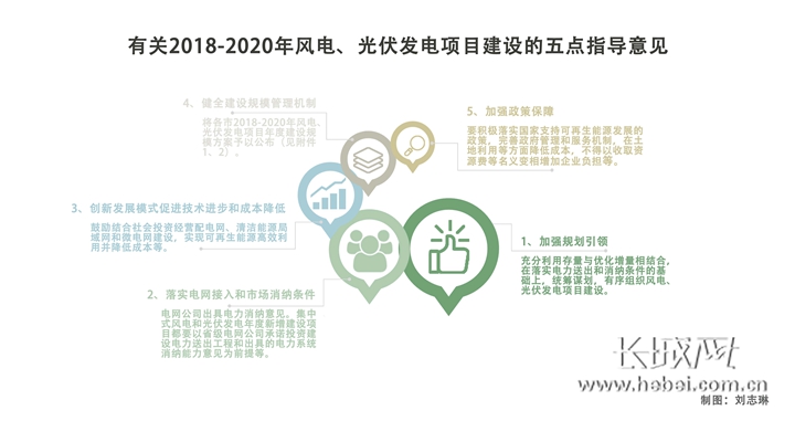 在風(fēng)電、光伏發(fā)電項(xiàng)目建設(shè)中將加強(qiáng)規(guī)劃引領(lǐng),落實(shí)電網(wǎng)接入和市場(chǎng)消納條件,創(chuàng)新發(fā)展模式促進(jìn)技術(shù)進(jìn)步和成本降低,健全建設(shè)規(guī)模管理機(jī)制和加強(qiáng)政策保障,以科學(xué)合理布局實(shí)現(xiàn)可再生能源持續(xù)健康發(fā)展?!兑庖姟访鞔_,落實(shí)可再生能源電力送出消納將作為安排風(fēng)電、光伏發(fā)電項(xiàng)目建設(shè)的基本前提條件。鼓勵(lì)結(jié)合社會(huì)投資經(jīng)營(yíng)配電網(wǎng)、清潔能源局域網(wǎng)和微電網(wǎng)建設(shè),降低成本,提質(zhì)增效,實(shí)現(xiàn)可再生能源的高效利用?!兑庖姟芬箅娋W(wǎng)企業(yè)遵循《可再生能源法》的規(guī)定,與依法取得核準(zhǔn)或備案的可再生能源發(fā)電企業(yè)做好銜接,及時(shí)投資建設(shè)配套電網(wǎng)、簽訂并網(wǎng)調(diào)度協(xié)議和購售電合同,履行對(duì)可再生能源發(fā)電的全額保障性收購責(zé)任。