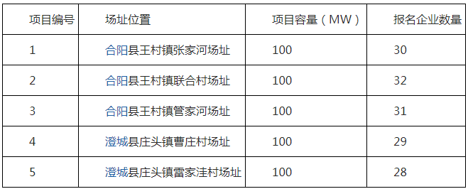 中國儲能網訊:根據《渭南光伏發(fā)電應用領跑基地2017年競爭優(yōu)選公告》,截止至2018年2月15日,共接收36家企業(yè)報名,各項目報名企業(yè)數量見下表。