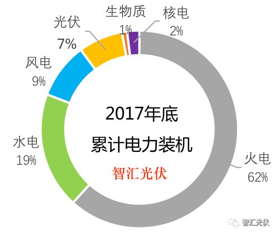 2017年底,光伏累計發(fā)電量為1182億kWh,占總發(fā)電量的1.8%