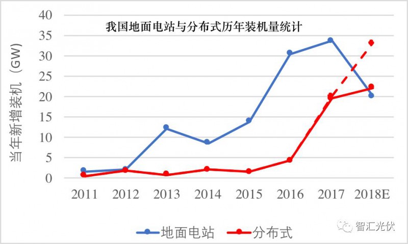 2018年分布式光伏的裝機量可能首次超過地面電站。