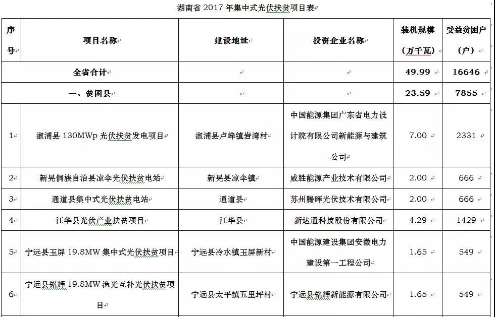 中國儲能網訊:根據《國家能源局關于可再生能源發(fā)展“十三五”規(guī)劃實施的指導意見》(國能發(fā)新能[2017]31號)和《國家能源局、國務院扶貧辦關于“十三五”光伏扶貧計劃編制有關事項的通知》(國能發(fā)新能[2017]39號)精神,省發(fā)改委、省扶貧辦、省財政廳聯(lián)合下發(fā)了《關于開展2017年集中式光伏扶貧項目申報工作的通知》(湘發(fā)改能源〔2017〕1133號),組織市州按照申報條件和篩選原則優(yōu)選投資企業(yè)和項目上報。