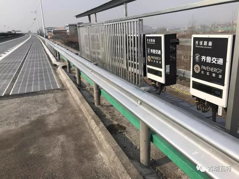 中國儲能網(wǎng)訊:12月28日下午2點,全球首段光伏高速公路在山東濟(jì)南亮相。這段神奇的光伏路面位于南繞城,全長1000米,采用承載式光伏路面技術(shù),同時路面下預(yù)留了電磁感應(yīng)線圈、信息化端口等衍生應(yīng)用設(shè)施,全部采用Growatt20000UE逆變器,已實現(xiàn)并網(wǎng)發(fā)電,是全球首條承載光伏路面研發(fā)與鋪設(shè)的高速公路。