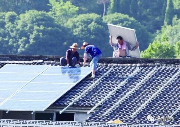但今年張家村卻不一樣了,原因在于村民房子屋頂正在安裝的光伏發(fā)電系統(tǒng)。安裝在屋頂上的光伏組件,可以吸收80%的光照熱量,這部分熱量聚集在光伏電池板上,通過熱傳道到下面的瓦片上,而不是太陽光直接照在瓦片上。此外屋頂安裝光伏發(fā)電系統(tǒng)對建筑物還有隔熱保溫作用,特別是在夏天高溫和冬天溫度很低的情況下,對于兩層房子的降溫作用更為明顯,這相當于在屋頂上又加了一塊厚厚的窗簾。