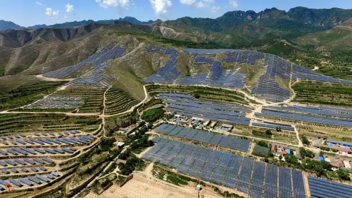 位于中條山南側(cè)60度荒坡上的“藍(lán)盔甲”開始收獲“陽光”,源源不斷將太陽能轉(zhuǎn)化的電能通過電網(wǎng)送入千家萬戶,綿延40余公里。