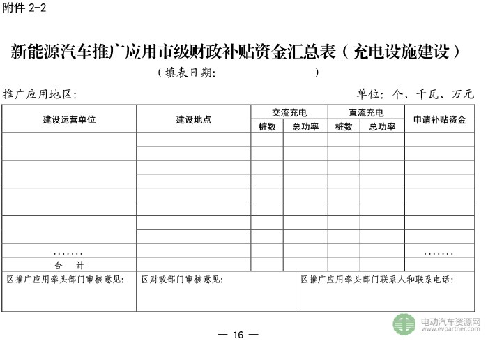 充電設(shè)施按建設(shè)所在地原則申請財(cái)政補(bǔ)貼資金。2018年3月底前,各區(qū)新能源汽車推廣應(yīng)用牽頭部門和財(cái)政局向市經(jīng)信委和市財(cái)政局提交本地區(qū)審查通過的充電設(shè)施建設(shè)申請撥付資金報(bào)告、新能源汽車推廣應(yīng)用市級財(cái)政補(bǔ)貼資金匯總表(充電設(shè)施建設(shè))(附件2-2),并提供以下材料: