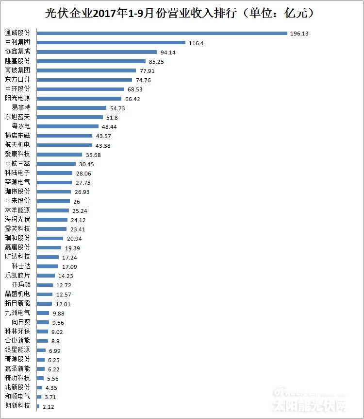 【最新】41家光伏上市公司2017年前三季度營收/凈利潤/總資產(chǎn)排行榜