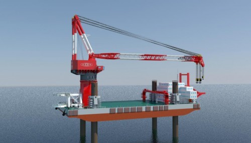 該平臺(tái)是振華重工自主研發(fā)、設(shè)計(jì)、制造的集大型設(shè)備吊裝、風(fēng)電設(shè)備打樁、安裝于一體的風(fēng)電施工平臺(tái)。船長100.8 米,型寬43.2 米,型深8.4米,起重能力達(dá)2000噸,為全球最大,在此之前,全球自升式風(fēng)電安裝平臺(tái)的最大起重能力為1500噸;該平臺(tái)的雙鉤、單鉤起重能力能達(dá)到1500噸,可實(shí)現(xiàn)大兆瓦海上風(fēng)機(jī)基礎(chǔ)的空中翻身;平臺(tái)上的起重機(jī)起升高度達(dá)120米,在目前全球自升式風(fēng)電安裝平臺(tái)中,擁有最高的吊高高度。最大作業(yè)水深達(dá)到50米,開創(chuàng)國內(nèi)之最,是我國海上風(fēng)電作業(yè)從淺海走向近海的關(guān)鍵利器。