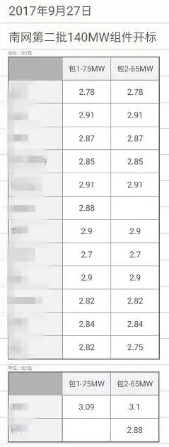 中國(guó)儲(chǔ)能網(wǎng)訊:在剛剛結(jié)束的南網(wǎng)第二批140MW光伏組件招標(biāo)中,天合、協(xié)鑫、晶澳、億晶、正泰、連云港神舟、錦州陽(yáng)光、中節(jié)能、愛(ài)康、比亞迪、英利、東方日升、晶科、韓華十四家企業(yè)中標(biāo),中標(biāo)價(jià)格從2.7元/瓦至3.1元/瓦不等。