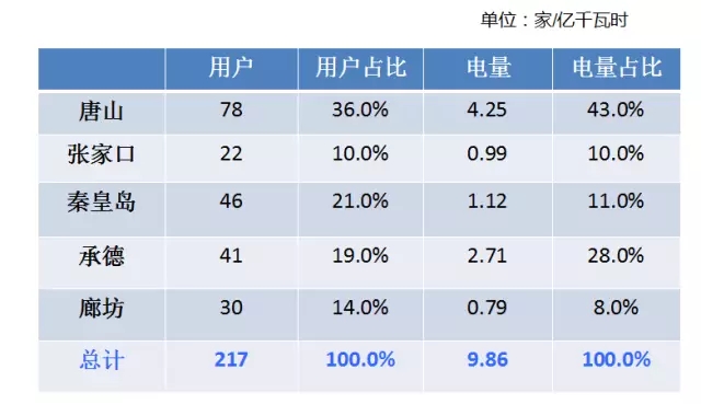 冀北地區(qū)準(zhǔn)入電力用戶227家,本次交易217家參與,10家未參與。參與交易的347個(gè)用電單元地區(qū)分布及電壓等級(jí)情況如下。