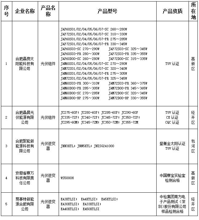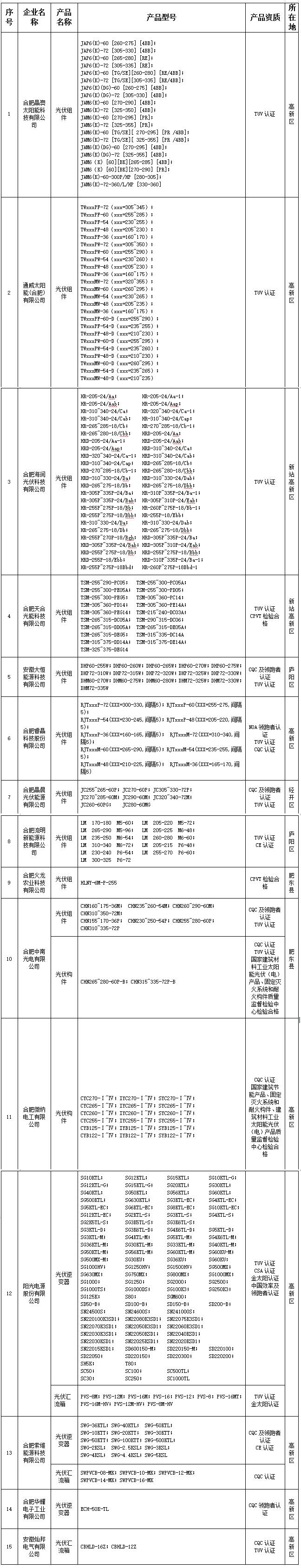 《2017年合肥市光伏產(chǎn)品推廣目錄(第二批)》