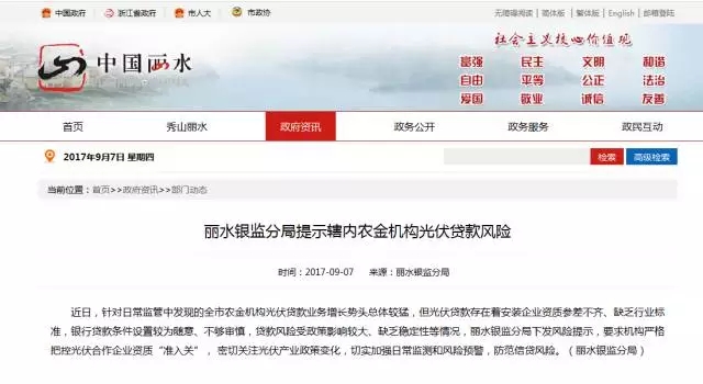 近日,麗水銀監(jiān)分局提示轄內(nèi)農(nóng)金機(jī)構(gòu)光伏貸款風(fēng)險(xiǎn),針對(duì)日常監(jiān)管中發(fā)現(xiàn)的全市農(nóng)金機(jī)構(gòu)光伏貸款業(yè)務(wù)增長(zhǎng)勢(shì)頭總體較猛,但光伏貸款存在著安裝企業(yè)資質(zhì)參差不齊、缺乏行業(yè)標(biāo)準(zhǔn),銀行貸款條件設(shè)置較為隨意、不夠?qū)徤?,貸款風(fēng)險(xiǎn)受政策影響較大、缺乏穩(wěn)定性等情況,麗水銀監(jiān)分局下發(fā)風(fēng)險(xiǎn)提示,要求機(jī)構(gòu)嚴(yán)格把控光伏合作企業(yè)資質(zhì)“準(zhǔn)入關(guān)”, 密切關(guān)注光伏產(chǎn)業(yè)政策變化,切實(shí)加強(qiáng)日常監(jiān)測(cè)和風(fēng)險(xiǎn)預(yù)警,防范信貸風(fēng)險(xiǎn)。