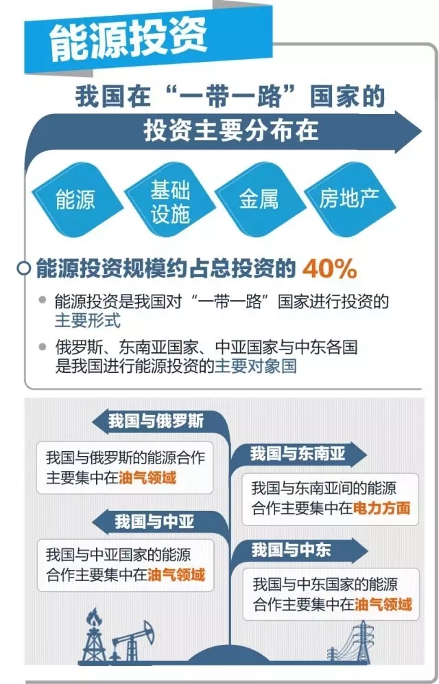 我國(guó)在“一帶一路”國(guó)家的投資主要分布在能源、基礎(chǔ)設(shè)施、金屬、房地產(chǎn)等領(lǐng)域,其中能源投資規(guī)模約占總投資的40%。能源投資是我國(guó)對(duì)“一帶一路”國(guó)家進(jìn)行投資的主要形式,其中,俄羅斯、東南亞國(guó)家、中亞國(guó)家與中東各國(guó)是我國(guó)進(jìn)行能源投資的主要對(duì)象國(guó)。
