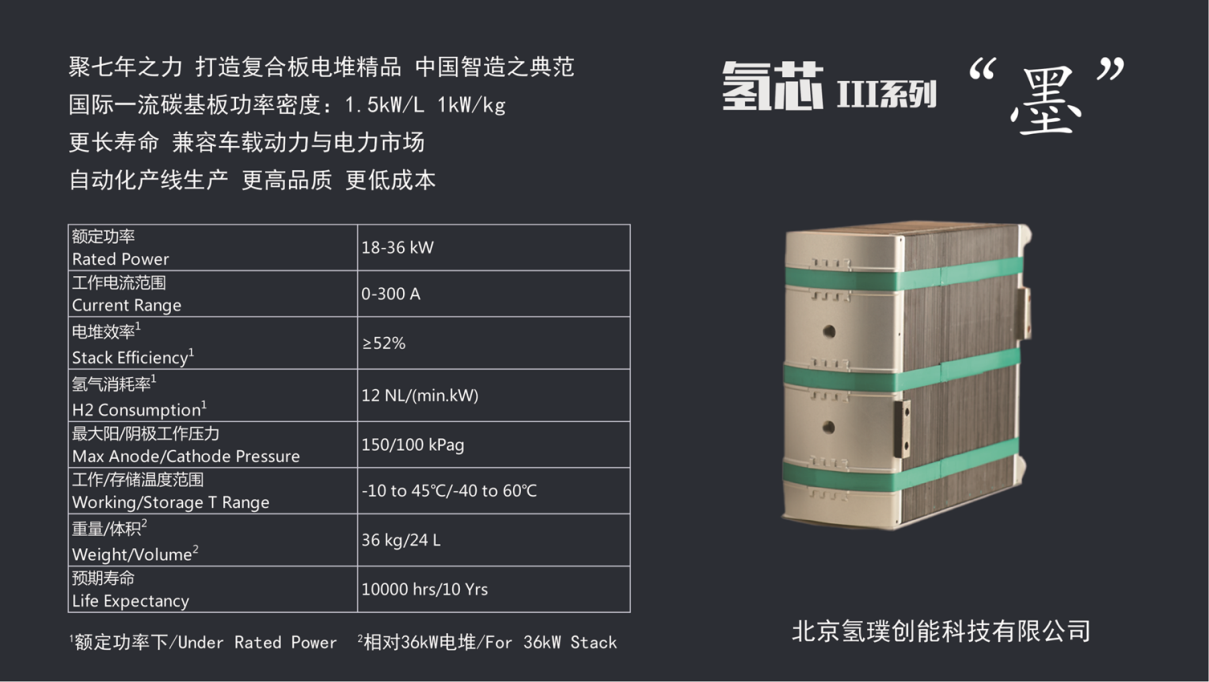8月29日,記者在北京氫璞和浙江氫途的展臺(tái)觀看了新產(chǎn)品推介會(huì),“氫璞研發(fā)的第三代電堆達(dá)到國(guó)際一流的碳基板功率密度:1.5kW/L和1kW/kg,更長(zhǎng)的壽命,兼顧車載市場(chǎng)好電力市場(chǎng)”歐陽(yáng)介紹到。