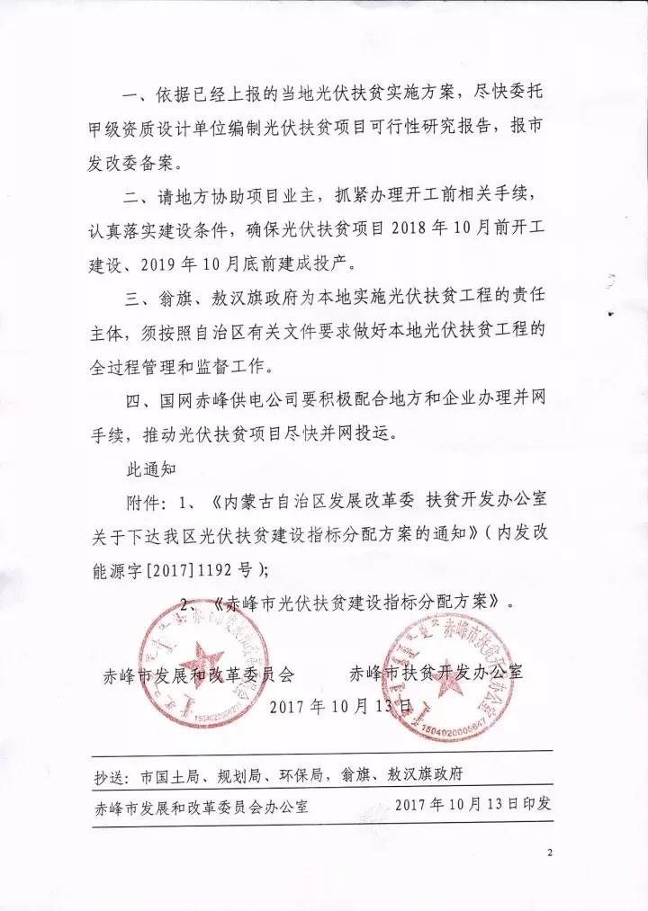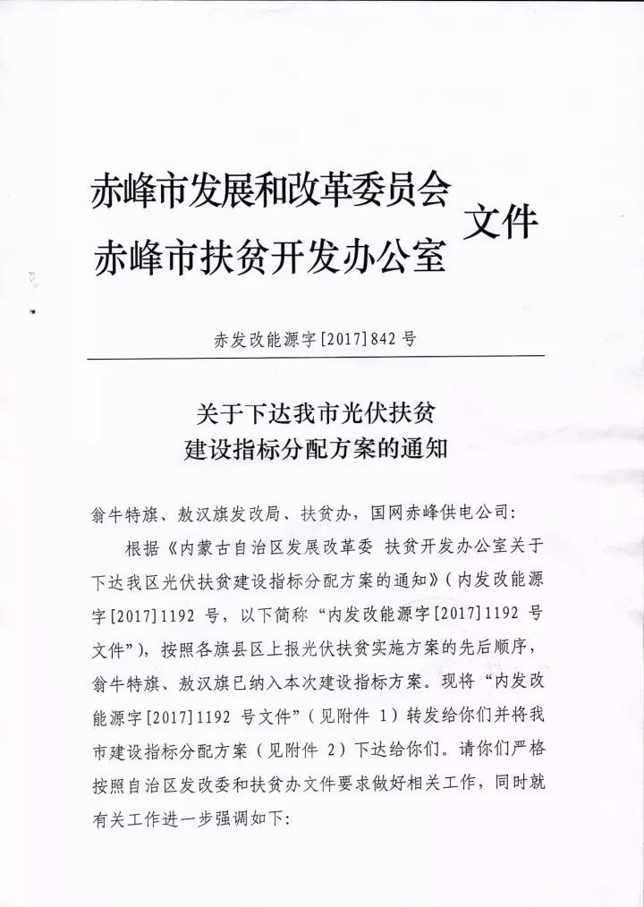 中國儲能網(wǎng)訊:10月13日,赤峰市發(fā)改委、扶貧辦聯(lián)合發(fā)文,下達赤峰市2017年16萬千瓦光伏扶貧建設(shè)指標(biāo)分配方案,通威新能源有限公司獲得敖漢旗100MW光伏扶貧指標(biāo),另外60MW光伏扶貧指標(biāo)被赤峰新金色能源有限公司獲得。